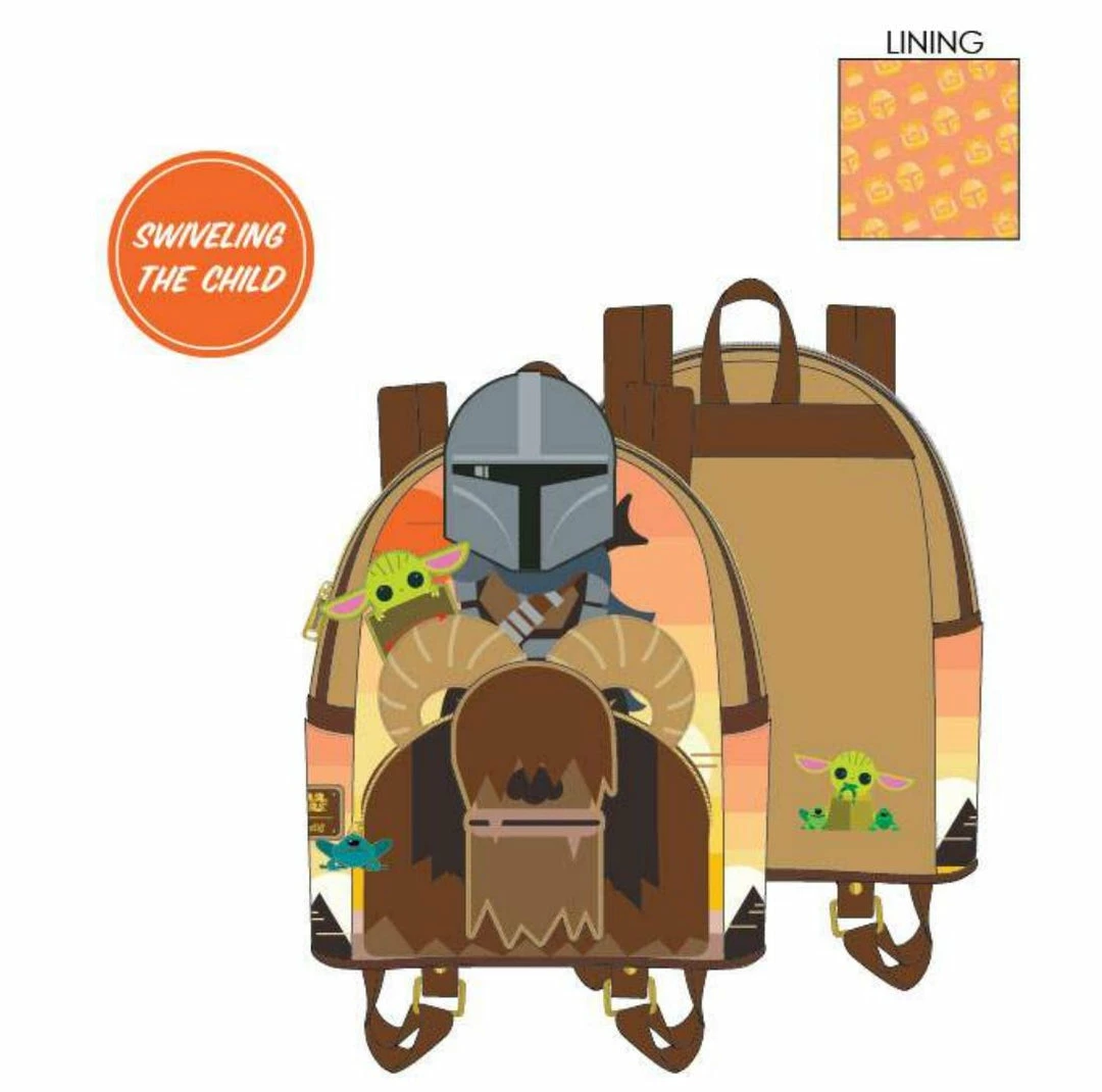 Celebrate the most stellar fandom of them all and the bounty hunting escapades of The Mandalorian™ with a Loungefly STAR WARS™ Mandalorian Bantha Cosplay Mini Backpack. The Child even swivels along the ride, but Mando will make sure he doesn’t fall off. It’s perfect for packing your essentials for whatever adventure comes your way.
