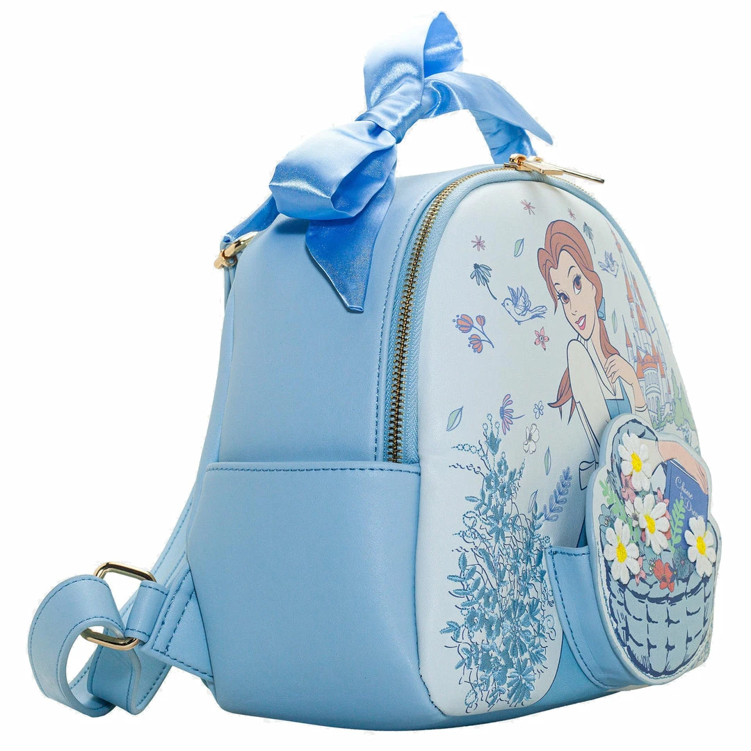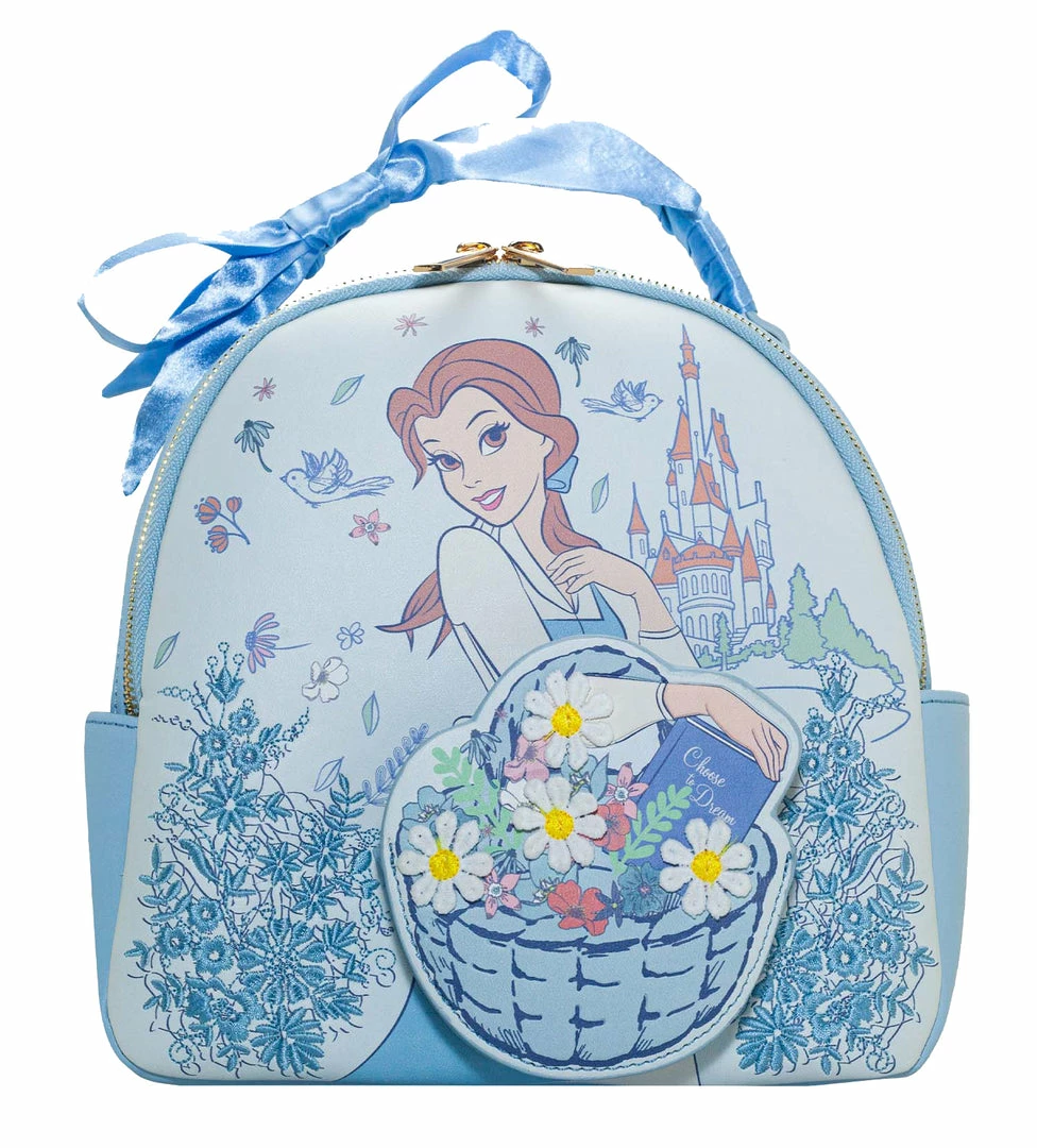 Bonjour! Explore with the most enchanting backpack, inspired by Belle’s Parisian village from Beauty and the Beast. The front die cut pocket features a woven basket, and the base of the bag has light blue floral embroidery and a print of your favorite princess. A bow ribbon decorates the top corner of the bag, and the backpack has adjustable straps for easy wear. An interior pocket will keep all your necessities organized for your next adventure.
