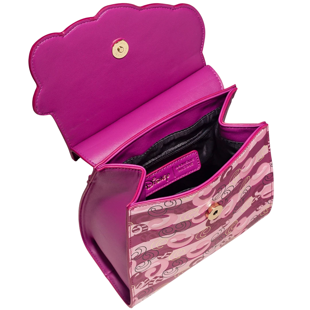 We’ve reimagined our iconic die cut crossbody to create the sassiest statement piece for our darling, Cruella. This signature crossbody showcases Cruella’s contrasting black and white hair, bold eyelashes, and fierce red lips. The mixed media materials and embroidery details add an elevated component to your powerful look. This crossbody is large enough to carry your everyday essentials.