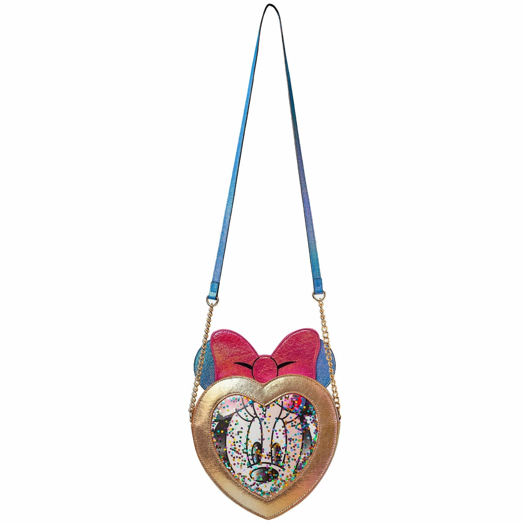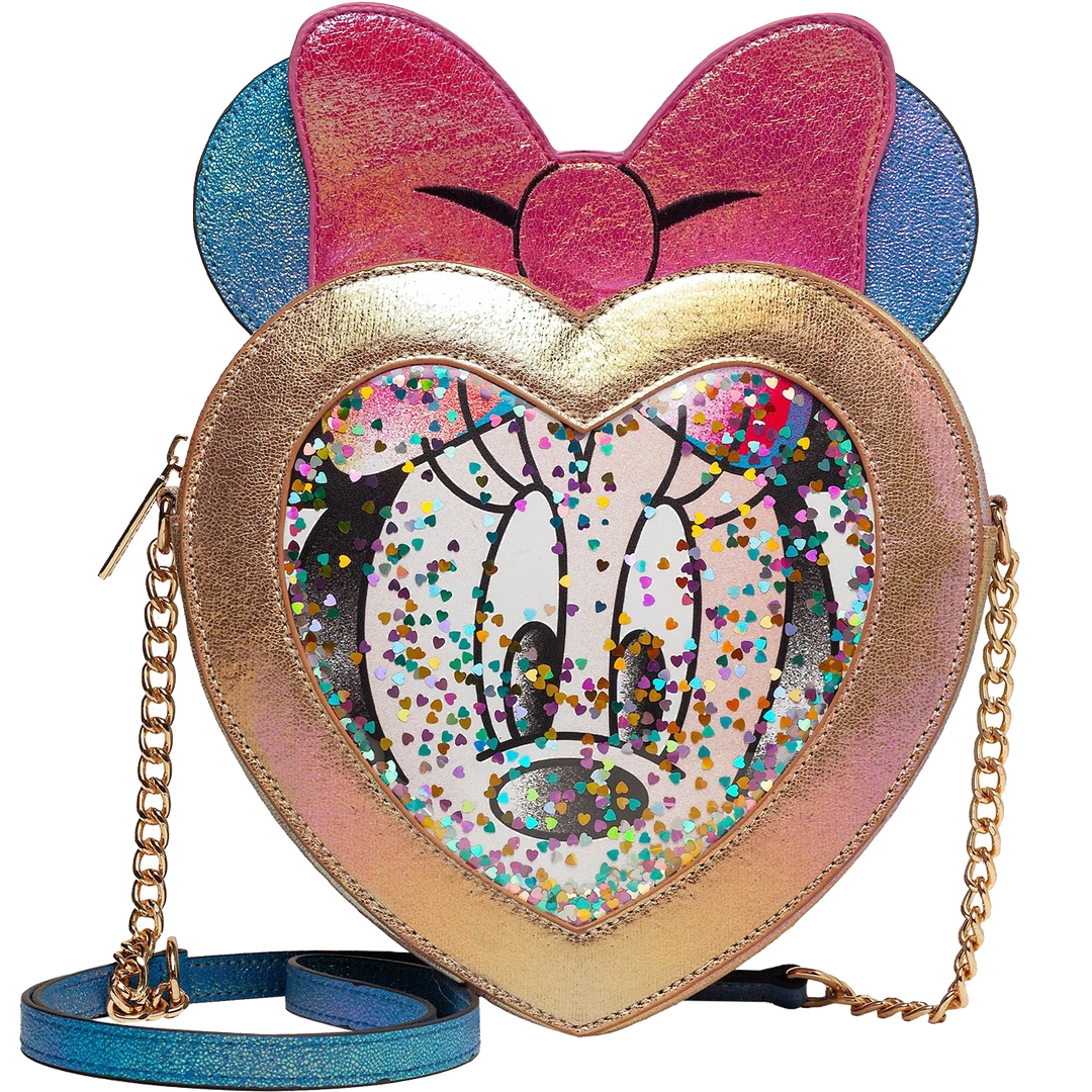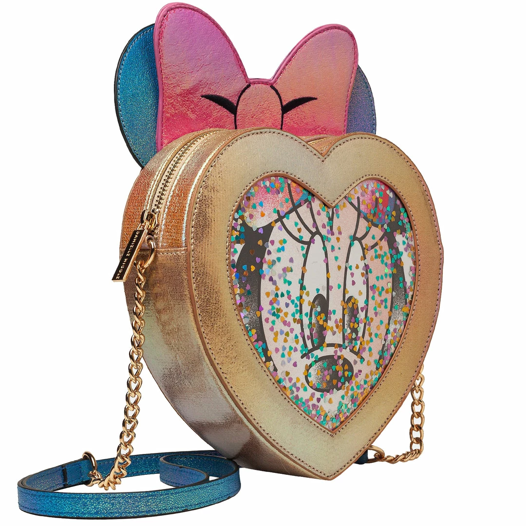 Minnie style, always! Bring your favorite mouse with you every day with this beautiful iridescent crossbody. The base of this crossbody is shimmery, and features a clear base so you can see Minnie’s face popping through and lots of fun holographic heart confetti. The bag also includes a classic pink iridescent bow and a top zipper closure to keep all your belongings secure, and a comfortable crossbody strap. Some days call for a little extra sparkle, and this collectable crossbody is truly ear-resistible!