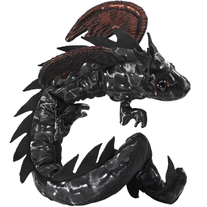 Bring dimension to your wardrobe with the stylish Midnight Dragon Wristlet puppet by Folkmanis®. Made in shimmering black with dark red accents and unique holographic skin, this wearable puppet will give the illusion that you are a keeper of dragons. Place the head onto one finger, wrap tail snugly around wrist, and secure with the two embedded magnets to hold in place. Keep your dragon companion in tow and bring your creative stories to life.