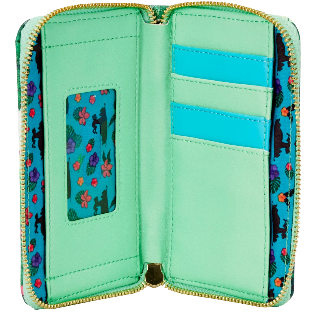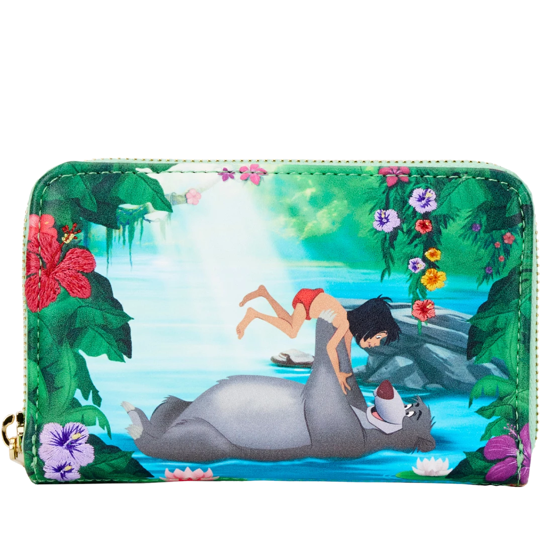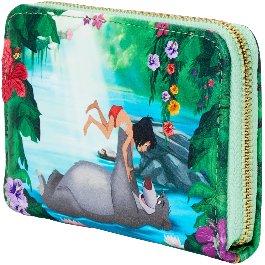 Troubles just drift away when Baloo is at Mowgli’s side, reminding him of the “Bare Necessities.” Add this memorable scene to your Disney collection with The Jungle Book Bare Necessities Zip Around Wallet. On the front of the wallet, the jungle bursts to life with blooming flowers, lush trees, and warm sunlight as Baloo floats on his back down tranquil blue waters. As he floats, he lifts Mowgli playfully up into the air. On the back, Kaa makes an appearance, nestled in the branches of trees. It’s the perfect accessory for any Disney occasion.