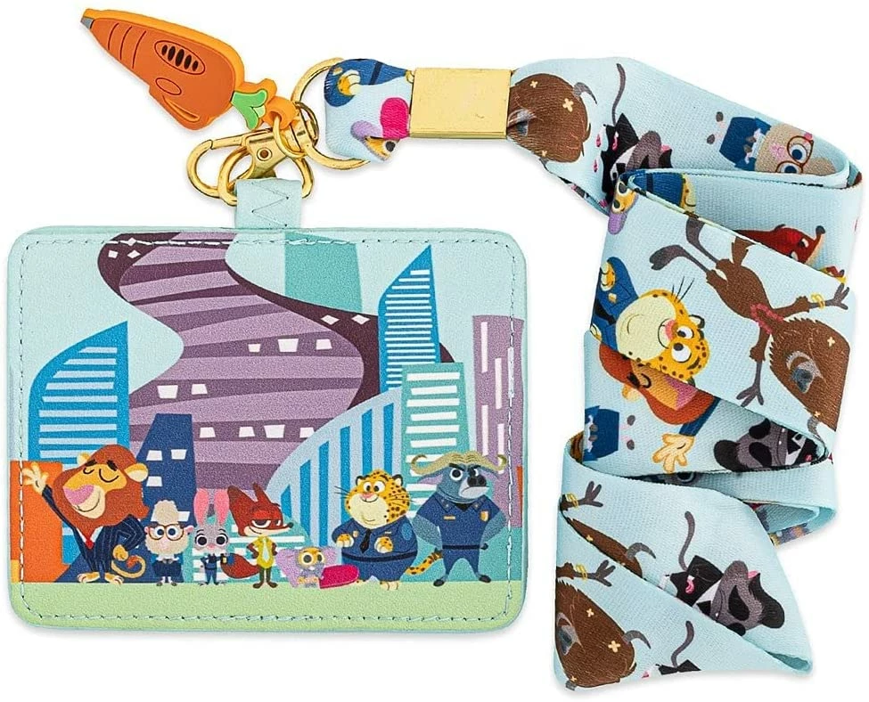 No matter the case, Officer Judy Hopps is reporting for duty. Carry Judy Hopps and the rest of the Zootopia group with the Loungefly Zootopia Lanyard with Cardholder. This Lanyard depicts Zootopia’s cityscape along with Officer Hopps, Nick Wilde, Mayor Lionheart, Officer Clawhauser, and more. This lanyard features printed details, polyester strap, rubber Carrot Pen charm, and a faux leather (polyurethane) cardholder. This lanyard is perfect for displaying your favorite pins or carrying your park pass.