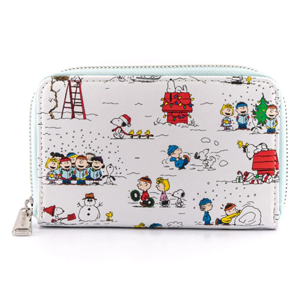Spread good cheer this season with the Loungefly Peanuts Happy Holidays Zip Around Wallet! Charlie Brown, Snoopy, Woodstock, Lucy, Sally, and more can be seen enjoying various winter-time activities such as sledding, caroling, gift giving, and more. This darling design is sure to spark smiles. Any Peanuts fan would love this beautiful wallet.