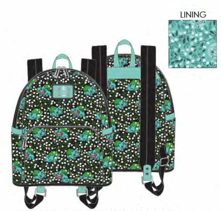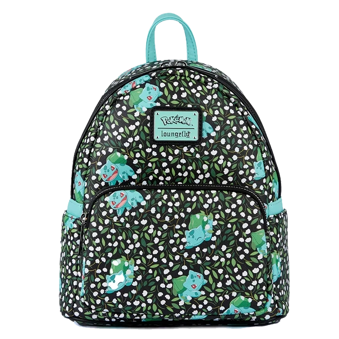 Catch and train the loyal and lovable Bulbasaur with this Loungefly Pokèmon™ Bulbasaur Mini Backpack. This backpack’s pattern features Bulbasaur amid an array of plants and white flowers. Side pockets and adjustable straps make trips comfortable and convenient. Note the coordinating inside lining of a magical plant motif.