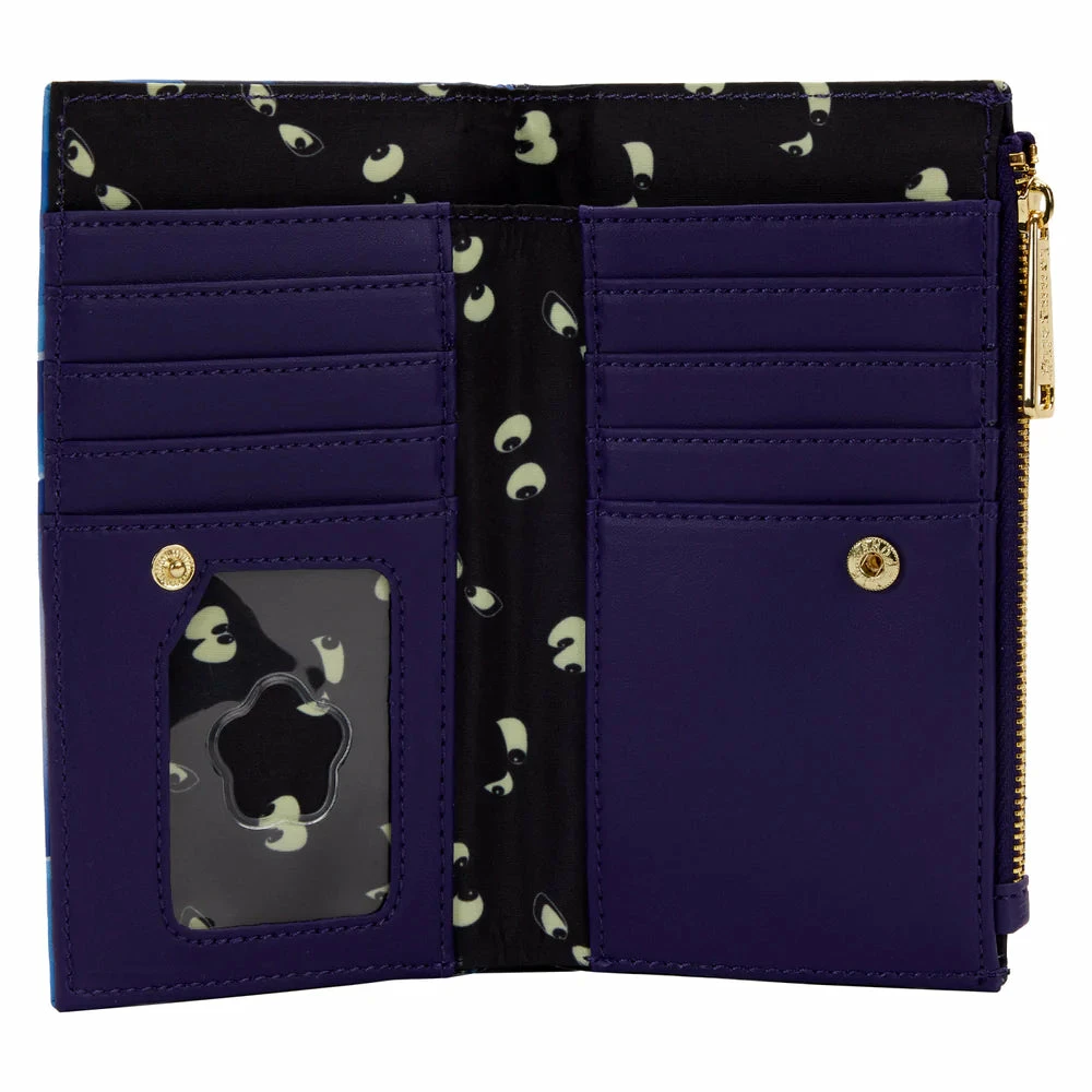 Features:Â Zip closure, snap fastener, shiny gold hardware, 7-card slots on either side, a clear slot for holding your ID card, and debossed, embroidered, printed, and glow-in-the-dark details.Â