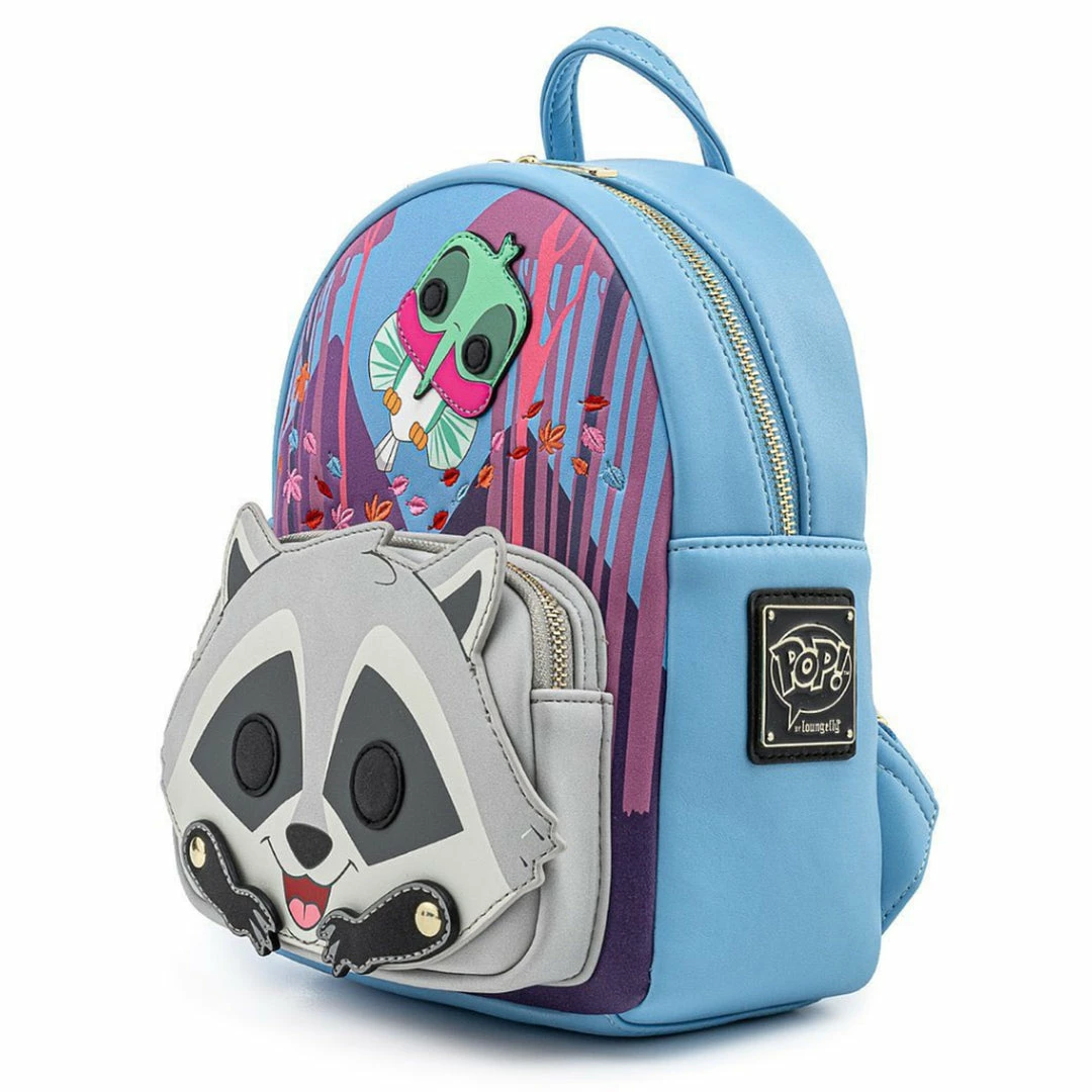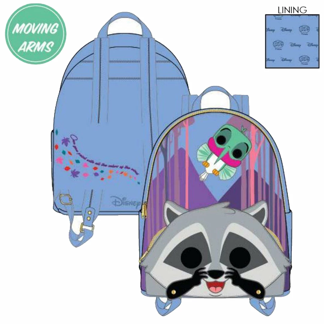 Explore the colors of the wind with the new Disney Pocahontas Meeko & Flit POP! Earth Day Mini Backpack from Loungefly. This adventurous festival bag features a vegan leather outer of Flit and posable armed Meeko, exterior zipper pocket, top handle, zipper closure, and adjustable straps. Adventure awaits!