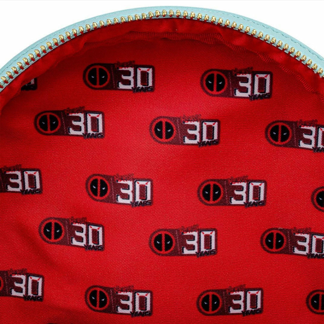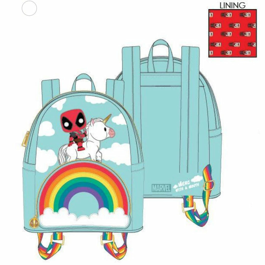 It’s Deadpool’s big 3-0! Celebrate in style with the Pop! by Loungefly Marvel Deadpool 30th Anniversary Unicorn Rainbow Mini Backpack. The design has a dreamy, serene feel to it, with Deadpool riding a unicorn over a rainbow in the clouds. The bag’s straps even have printed rainbow details! The Deadpool mini backpack is a fun accessory for Marvel fans and makes a great everyday bag.