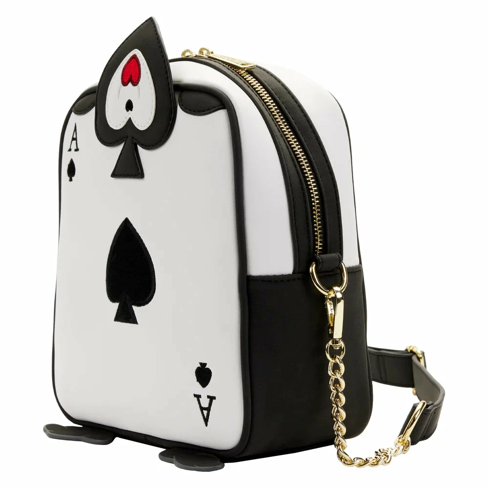 The Queen of Hearts has sent one of her card soldiers to infiltrate your Alice In Wonderland collection as the figural, Alice in Wonderland Ace of Spades Crossbody Bag! The Card Soldier himself is on his feet, awaiting the command of the Queen of Hearts- who can be seen shouting on the back of the bag. This design features a detachable chain shoulder strap which can be adjusted to fit your preferred wearing length. The Ace of Spades Crossbody bag is a commanding presence for any Alice In Wonderland collection.