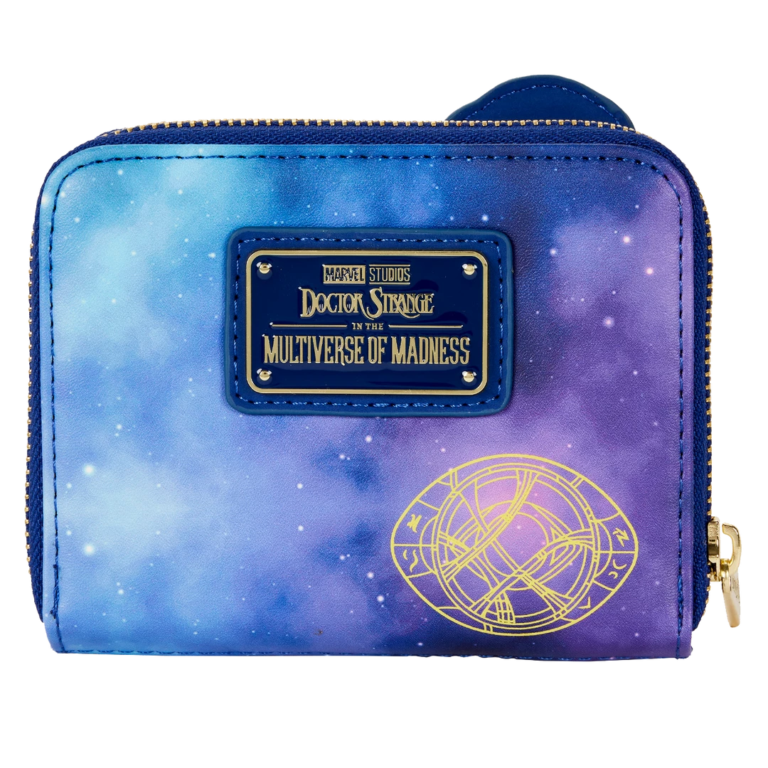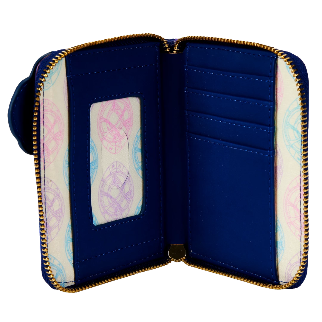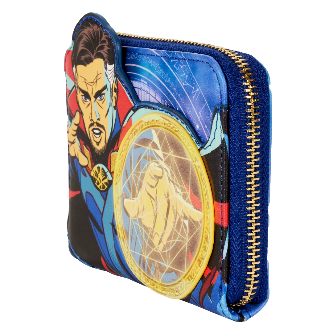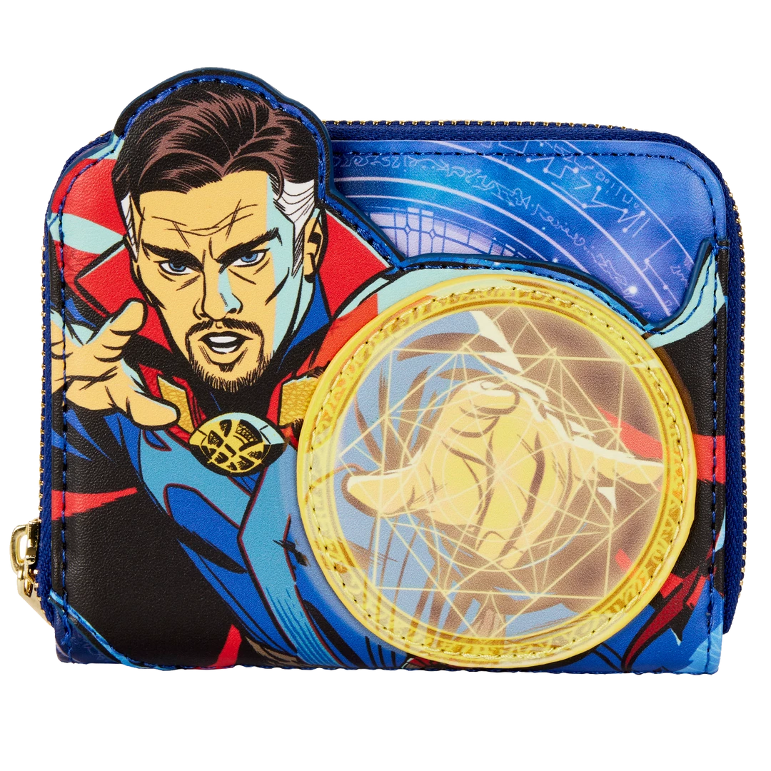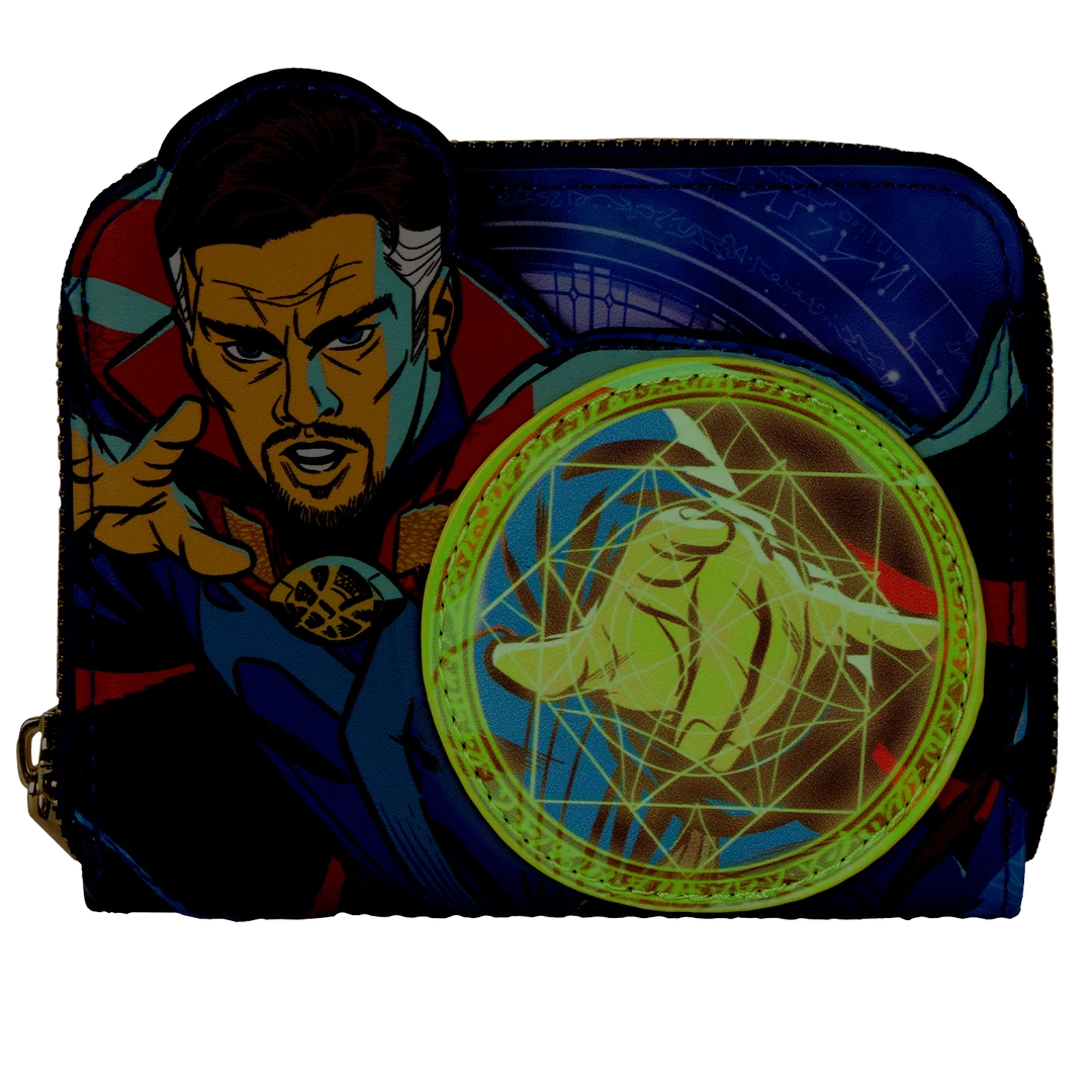 Stop the hands of time to capture this Doctor Strange in the Multiverse of Madness Glow in the Dark Zip Around Wallet. On the front of this zip around wallet, Doctor Strange casts a golden sign that glows green in the dark. On the back, the Eye of Agamotto appears in gold, floating through space and time. When the lights go out, it glows green in the dark as well.